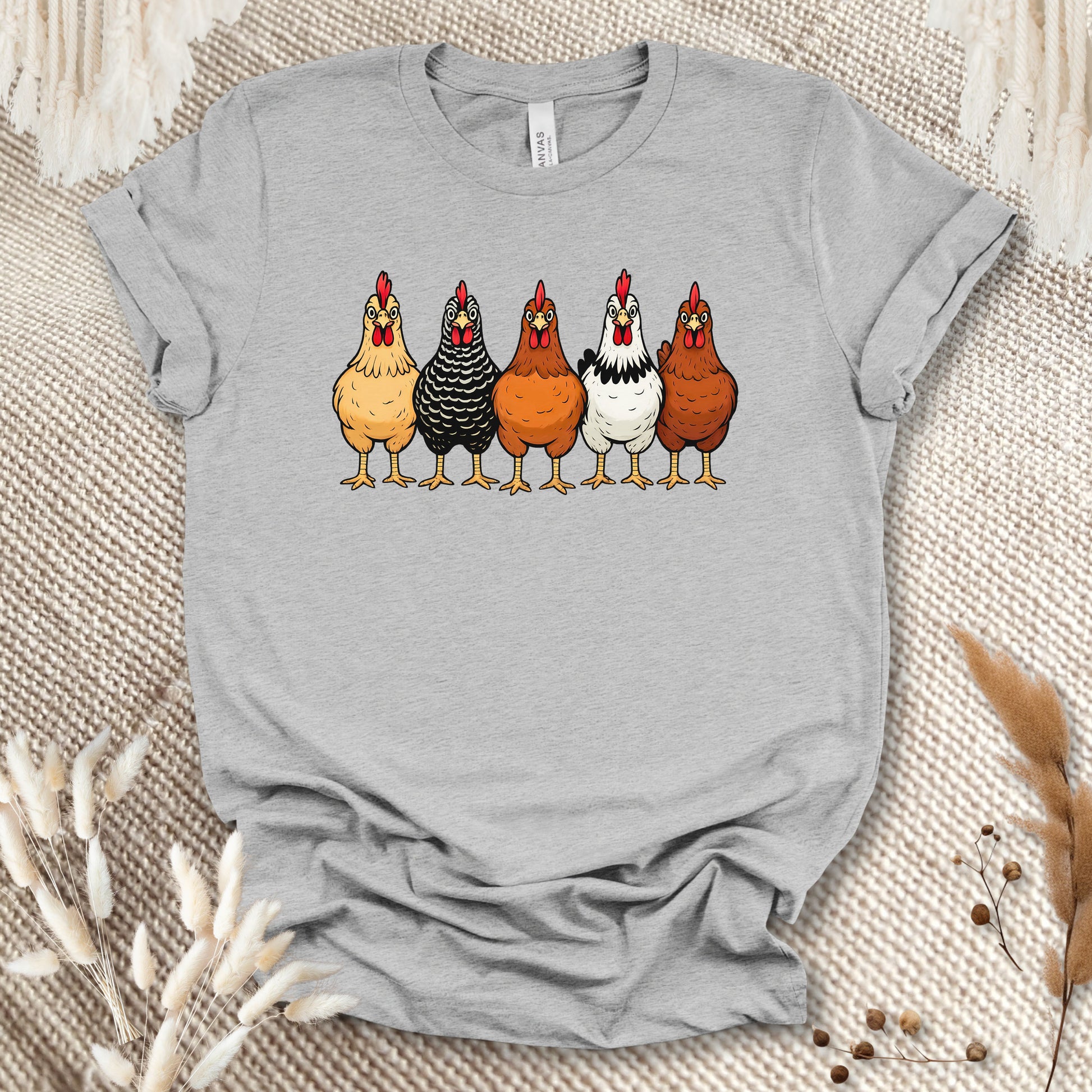 Funny Chicken Lover T-Shirt – Cute Hen Lineup Graphic Tee for Farm Moms, Backyard Flock Keepers & Country Life Fans